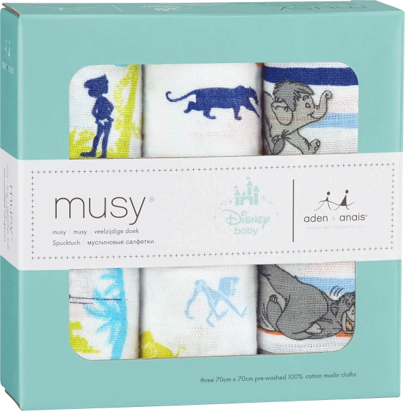 Combining the magic of muslin with the wonder of Disney, these musy squares are a playful celebration of The Jungle Book. Made from 100% cotton muslin, they’re soft, absorbent and breathable, making them the perfect security blanket, makeshift bib, burpy cloth, and more. Sized for life on the go and designed to last through spills, dribbles and baby burps, our musy squares stay soft wash after wash.