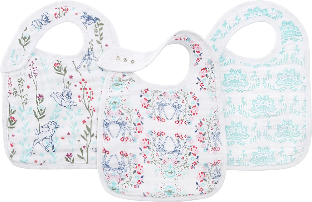 We love the delightful aden + anais Snap Bibs with a choice of Disney themed prints! Perfect for little ones at meal time and would make a great small gift too! The aden + anais Snap Bibs come in a pack of 3, handy to always have a few bibs spare for messy meal times! Made from 100% cotton muslin it’s soft around your little ones neck and chest too. They are simple to put on your little one with just one pop – there’s 3 adjustable sizes.