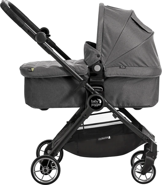 The City Tour™ LUX Folding carrycot is suitable from birth to 9kg and attaches directly onto the Tour™ LUX frame without the need for additional adapters. The carrycot folds down to half its original size and can fold on or off the pushchair, making traveling with your infant a breeze. Ultra-compact and lightweight just like the City Tour™ LUX, the carrycot features an adjustable hood with carry handle, peekaboo window and UV 50+ fabrics. The removable apron has an adjustable storm flap for colder climates which helps to protect against harsh weather. Suitable for overnight sleeping when NOT used with pushchair chassis or a carrycot stand.