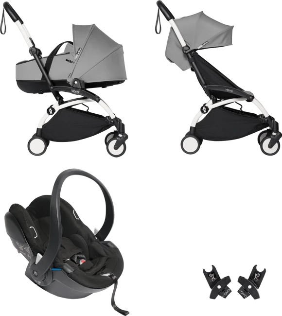 BABYZEN YOYO² With Bassinet Travel System - White Frame -Stroller Shop 29 10 20203049153295 GREY white YOYO2 with car seat 1