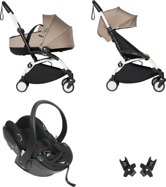 BABYZEN YOYO² With Bassinet Travel System - White Frame -Stroller Shop 29 10 20203582039366 TAUPE white YOYO2 with car seat 1