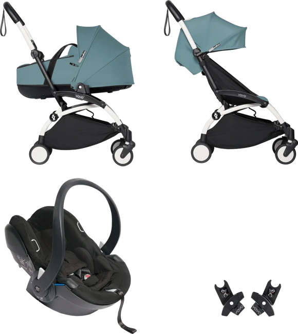BABYZEN YOYO² With Bassinet Travel System - White Frame -Stroller Shop 29 10 20203900239093 AQUA white YOYO2 with car seat 1