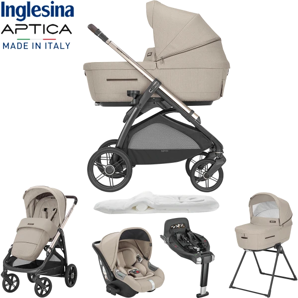 Inglesina Aptica the Glam Crossover in Pashmina Beige is Inglesina’s new Quattro Travel System with unmistakable GLAMOROUS style, affording exceptional comfort for your baby, extremely easy to use and impeccable design.