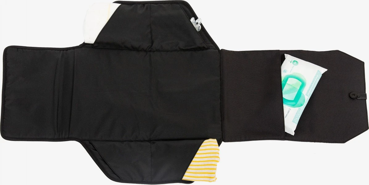Comfortable, practical and convenient, the Joolz changing mat takes the hassle out of nappy changes on the go. This stylish black changing mat has four handy pockets to hold nappies and wipes, plenty of soft padding to keep your baby cushioned, and is made out of a water resistant fabric for easy cleaning. When you’re done, just fold it down into a compact package, close it with the magnet clasp, and pop it back in your bag. Take the Joolz changing mats with you wherever you go, and you’ll always be ready to take care of business.