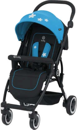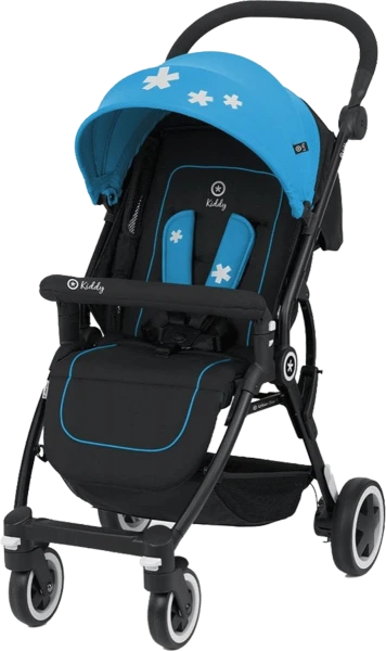 The Kiddy Urban Star 1 pushchair in Summer Blue is suitable from birth, making it the perfect pushchair. This is because the backrest, as well as leg rest can be adjusted from a sitting position to a flat lying position. The Urban Star 1 can be folded to a compact size in just two simple steps and still remains standing- perfect for parents who are always on the go or need to store it in a cupboard.