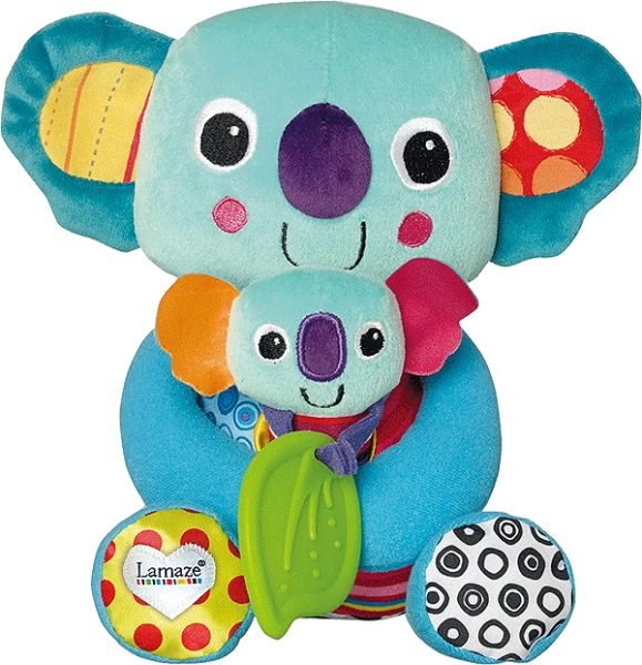 Little one will love exploring the various developmental features of the Lamaze Cuddle n Squeak Koalas. This mum and baby koala set includes a leaf teether for baby to chew on and different textures for baby to feel. The baby koala is also a squeaker toy and can be placed in and out of the koala mum’s arms.