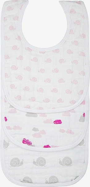 Incredibly soft and comfortable to wear, Mummy, Daddy and baby are sure to appreciate these Muslin Bibs from Lassig. Suitable for infants 0-6 months and perfect for keeping that cute new outfit spotless all day long, even through the sloppiest of sneezes, feedings, drools and burps! Made of layered, cotton muslin with a rear snap closure. Machine washable. Sold in sets of 3 and available in 4 friendly pattern combinations: Sweet Dreams Boys, Sweet Dreams Girls, Elephant & Clouds, Snails & Clouds