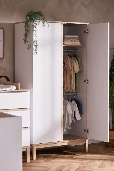 The Astrid double wardrobe is the perfect bend of practical storage space and contemporary design. The two-tone finish and no-handle doors don’t compromise on style, while the large cupboard space features two hanging rails and a single full width shelf. Putting your baby’s adorable outfits away has never been easier.