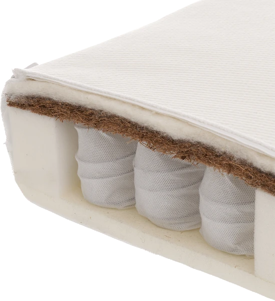 - Dual core; 15mm fibre side – breathable, hypoallergenic, firm and comfortable side for babies. Individual pocket springs covered in Nursery grade dent resistant foam – superb support and comfort side for toddlers