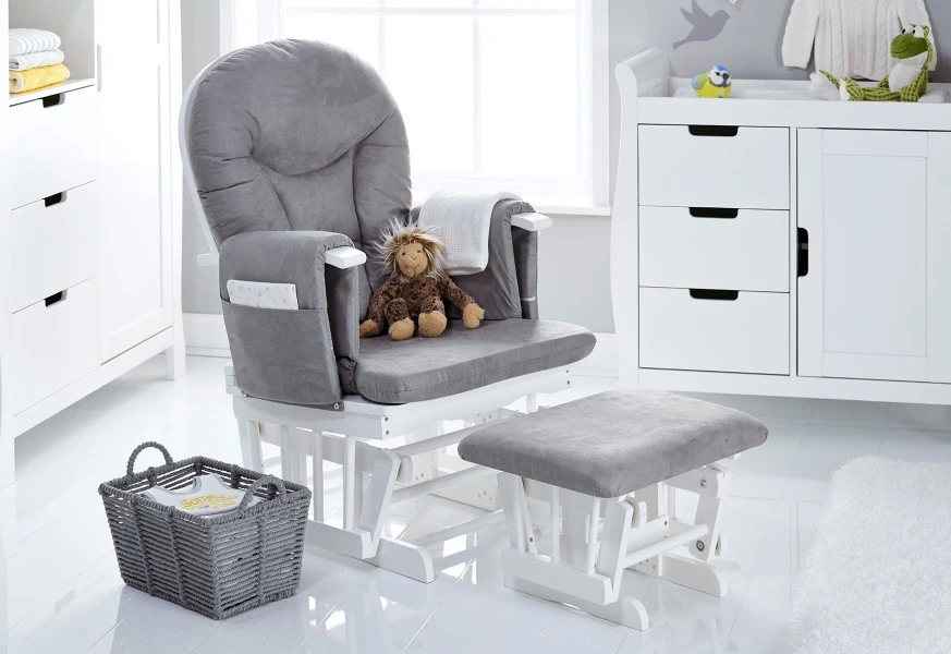 The Obaby reclining glider chair is the perfect place to rest and relax with your baby in comfort. No matter what the occasion, be it feeding time or reading your little one’s favourite book, the gentle gliding motion helps you unwind whilst also soothing your tot to sleep.