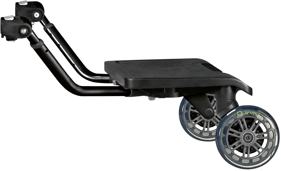 The Quinny Board is For Buzz, Buzz Xtra, Moodd, Zapp Xtra 2, Zapp Xtra. With the Quinny ride-on board it will be much easier to cruise the city with your baby and your toddler. You can easily click the board on the integrated connection points on the Quinny stroller frame. For older models, adapters are included.