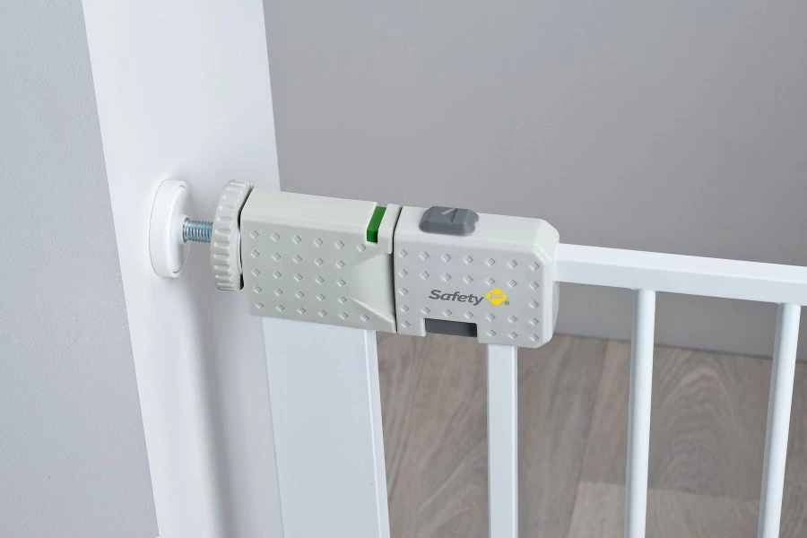 The Safety 1st SecurTech Simply Close Metal Gate has a clever U-shaped design to combine simplicity and safety. The Simply Close Metal Gate uses a 4-point easy installation which requires no drilling. Once installed, the 2 way opening mechanism makes getting through the Simply Close Pressure Fit Gate easy while the SecurTech colour indicator shows that the gate is locked properly and also that the spindle is the right length for correct fitting.