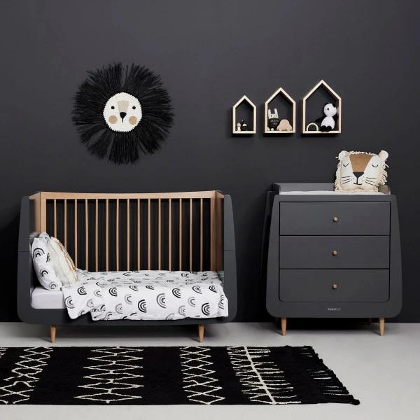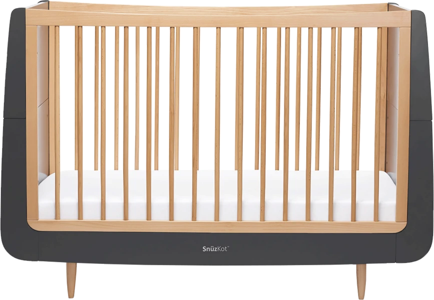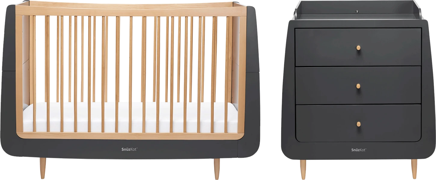 Introducing Slate Nursery Set, the stunning new SnuzKot style that blends warm natural tones with a modern and minimal look. Suitable from birth to 10 years, SnuzKot adapts as they grow, with three mattress heights in cot mode and easy conversion into their very first toddler bed and even a junior bed when using the extension kit (sold seperately).