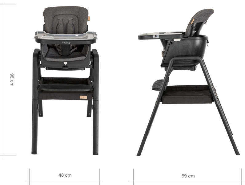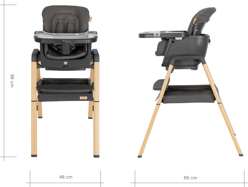 The Tutti Bambini Nova Compete Set includes ultimate evolutionary and multifunctional highchair with rocker suitable from birth to approx 12 years. This practical highchair set can be used in 11 different modes, which you can switch depends on your family needs. Whether you’re looking for a high chair, low chair, booster seat, toddler chair, rocking chair, kids chair or mini table with chair for playtime, Nova offers you a clever all in one system.