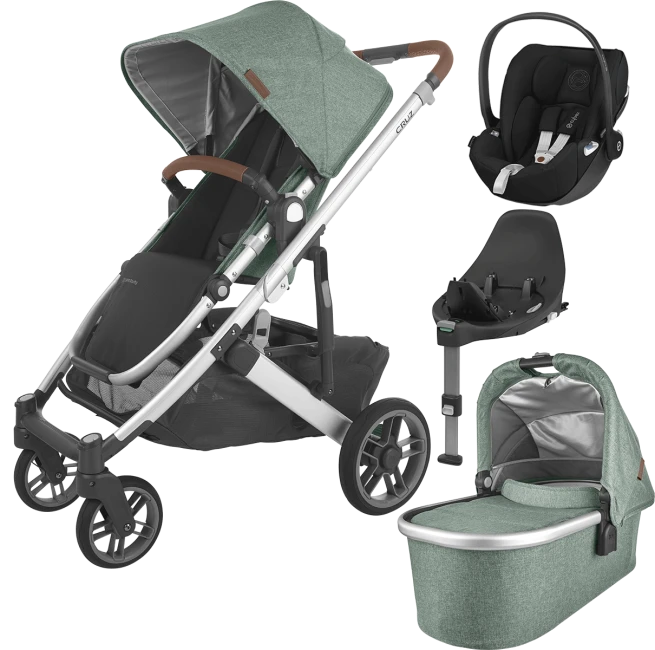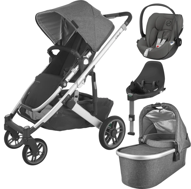 This bundle includes the Uppababy Cruz v2 Pushchair & bassinet as well as the Cybex Cloud Z Infant Car Seat making this travel system the perfect from birth solution so you can use it on the drive home from the hospital with your little one!Â