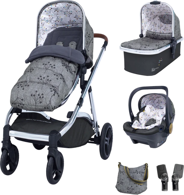 PACKAGE INCLUDES: Cosatto Wow XL Chassis, Cosatto Wow XL Carrycot, Cosatto Wow XL Seat Unit, Cosatto Docks Car Seat, Cosatto Car Seat Adapters, Cosatto Changing bag and Cosatto Footmuff